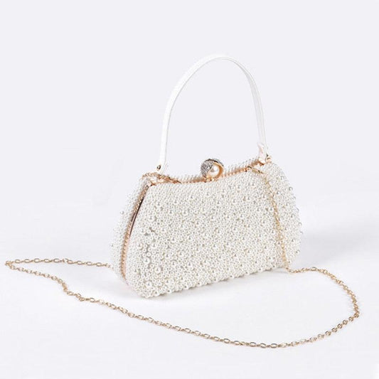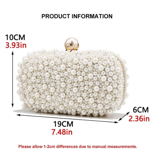 New Women Full Pearl Small Evening Clutch - Festa Chic Embroidery Beading Luxury Handbag Shoulder Chain Design Wedding Purse (WH1)(WH6)(1U43)
