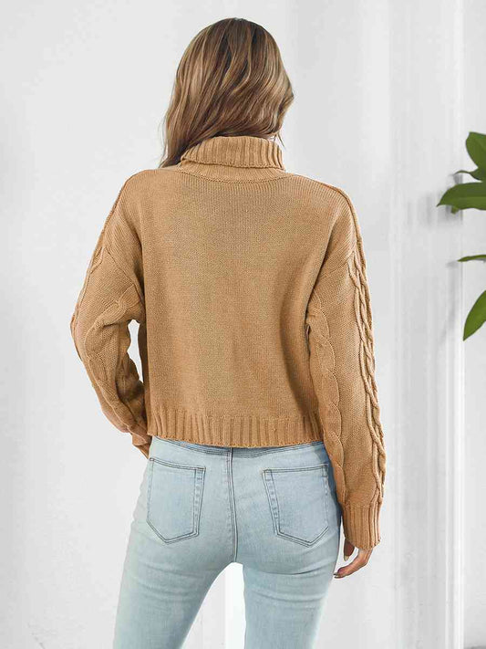 Zip-Up Mock Neck Dropped Shoulder Pullover Sweater
