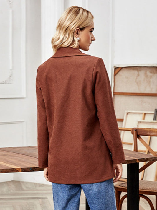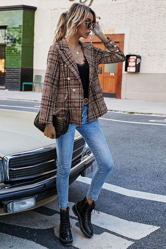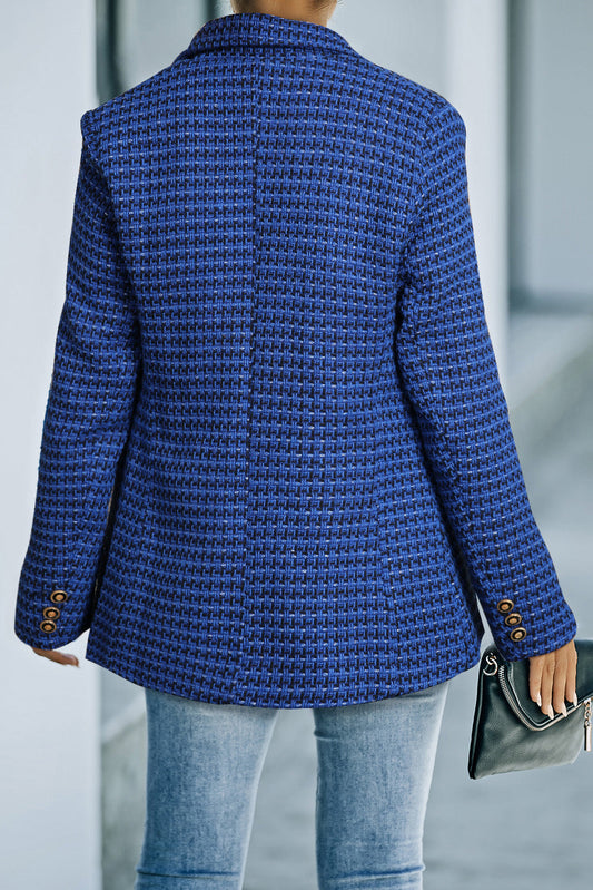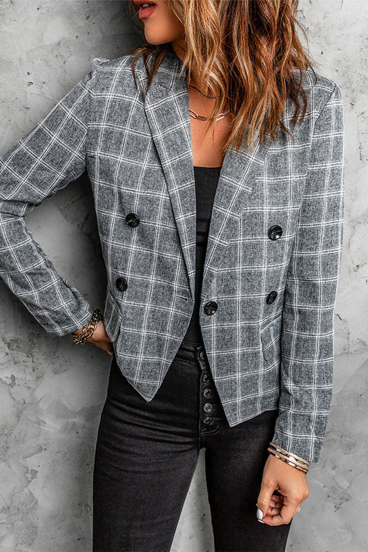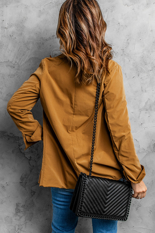 Double-Breasted Padded Shoulder Blazer with Pockets