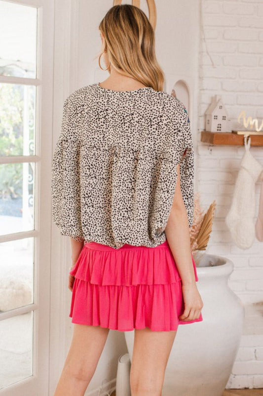Leopard Capped Sleeve Pleated Top