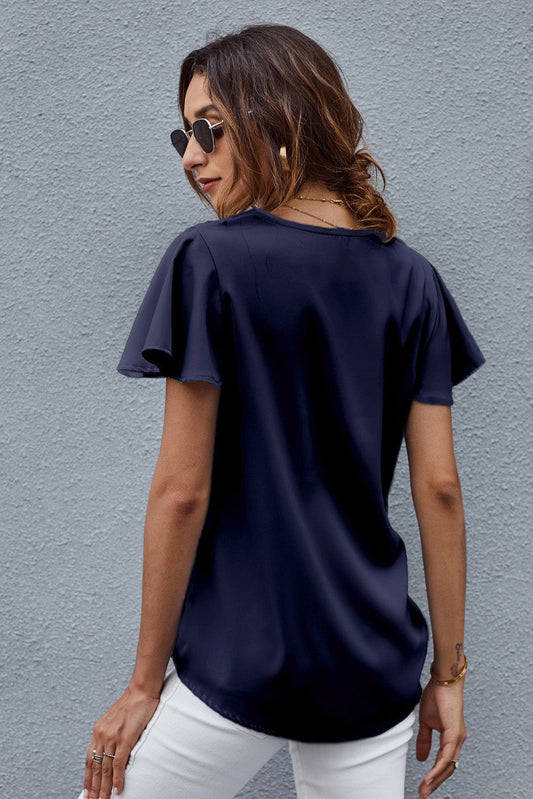 V-Neck Flutter Sleeve Blouse
