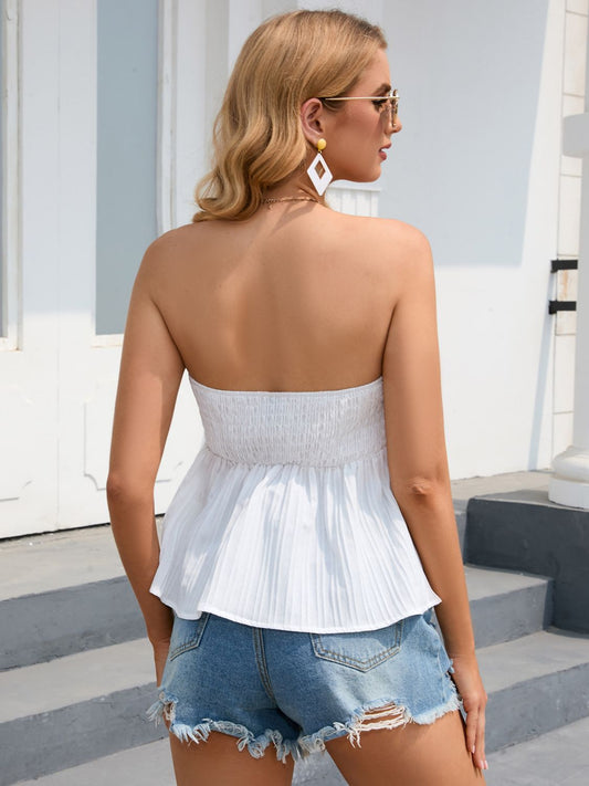 Drawstring Detail Strapless Peplum Top