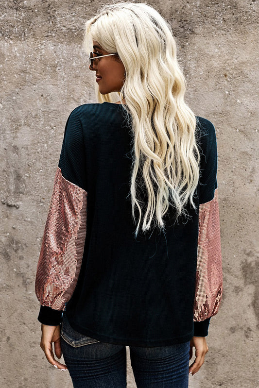 Contrast Sequin V-Neck Drop Shoulder Top