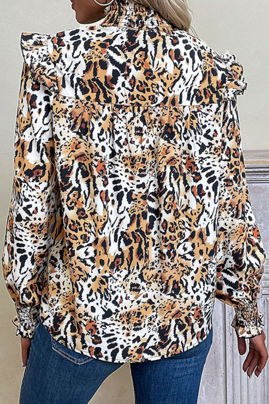 Printed Mock Neck Ruffle Shoulder Top
