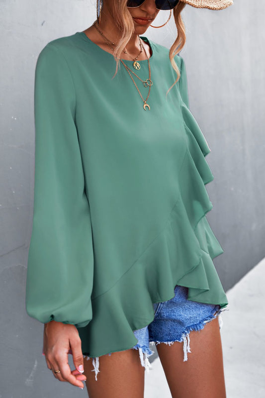 Asymmetrical Ruffle Trim Tunic Blouse