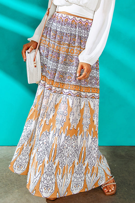 Printed A-Line Maxi Skirt