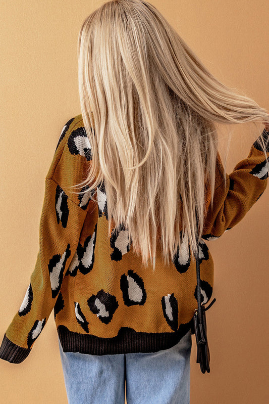 Striped Leopard Patchwork Duster Cardigan with Pockets