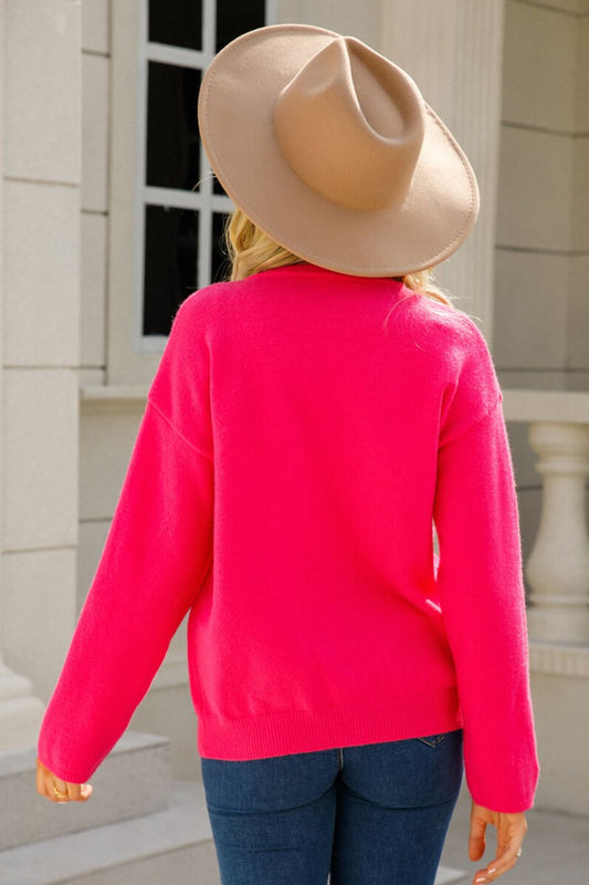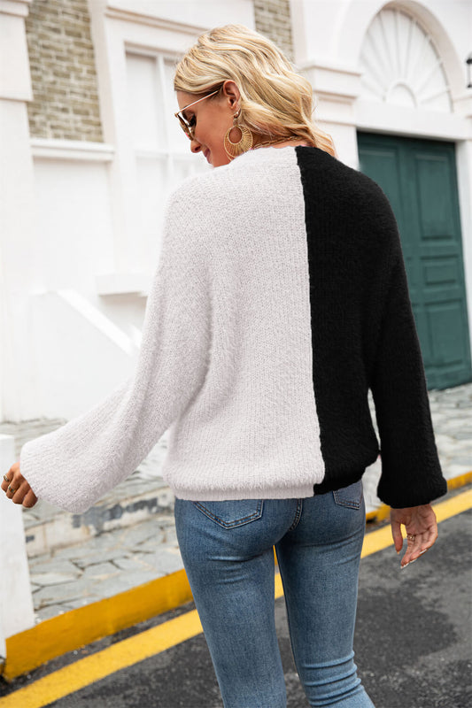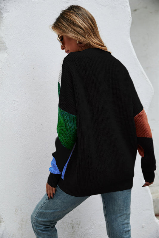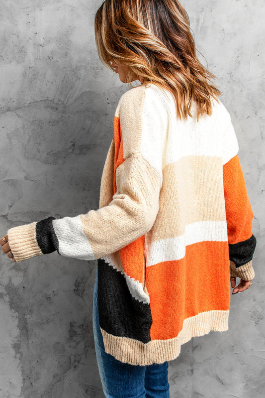 Color Block Button-Up Dropped Shoulder Plunge Cardigan