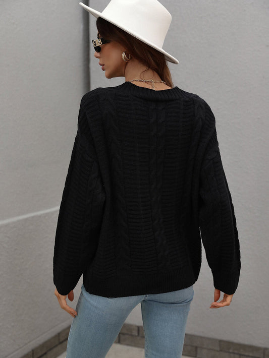 Cable-Knit Open Front Longline Cardigan with Pockets