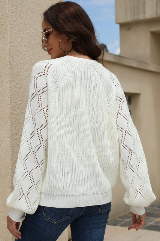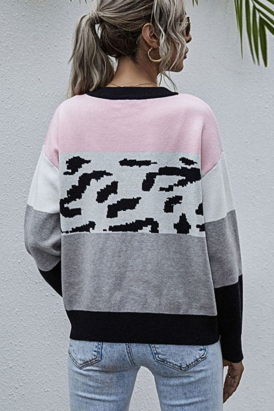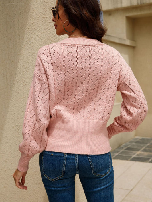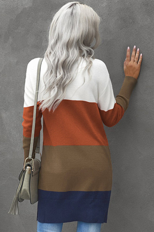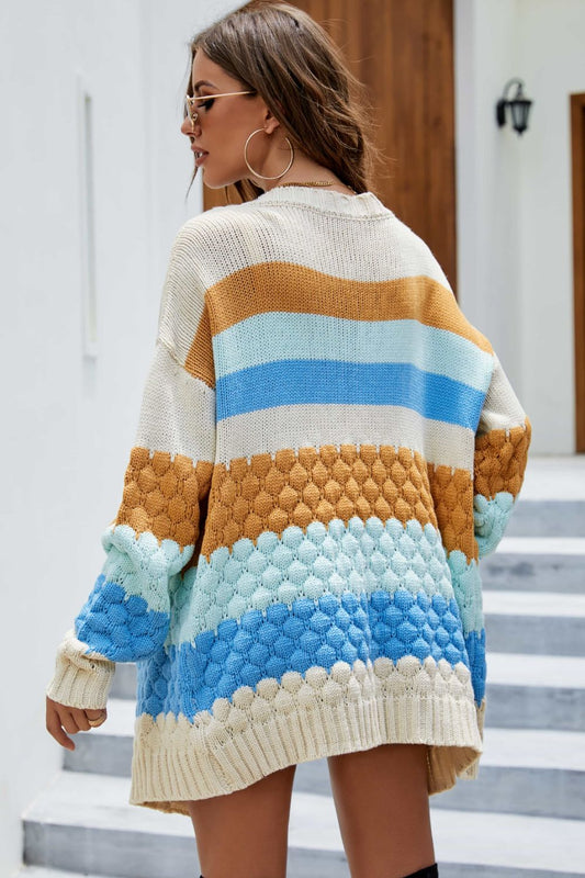 Striped Rib-Knit Lantern Sleeve Cardigan