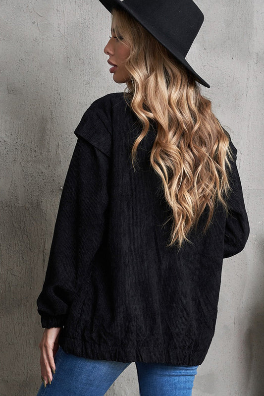 Snap Front Shoulder Detail Corduroy Shacket