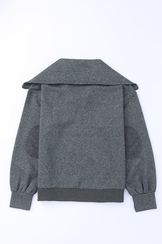 Ribbed Zip Up Statement Collar Jacket