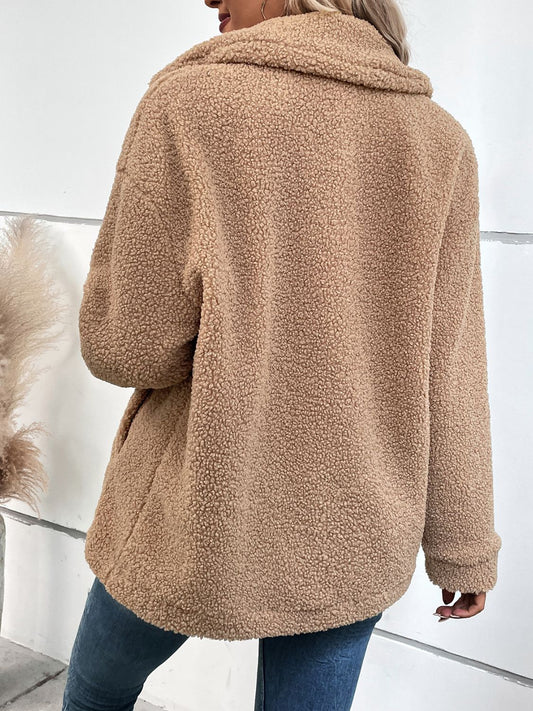 Double-Breasted Lapel Collar Teddy Jacket with Pockets