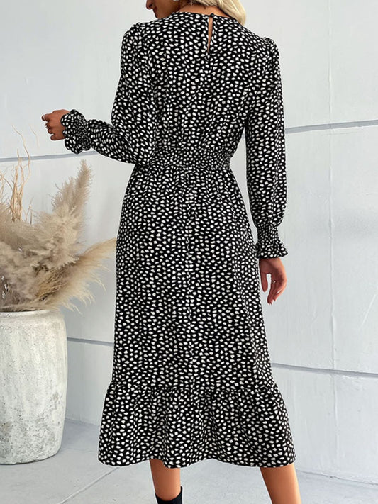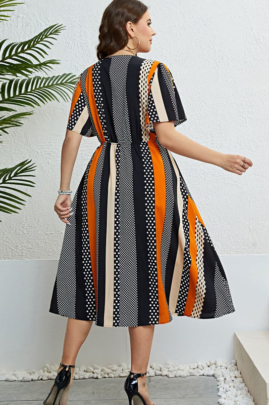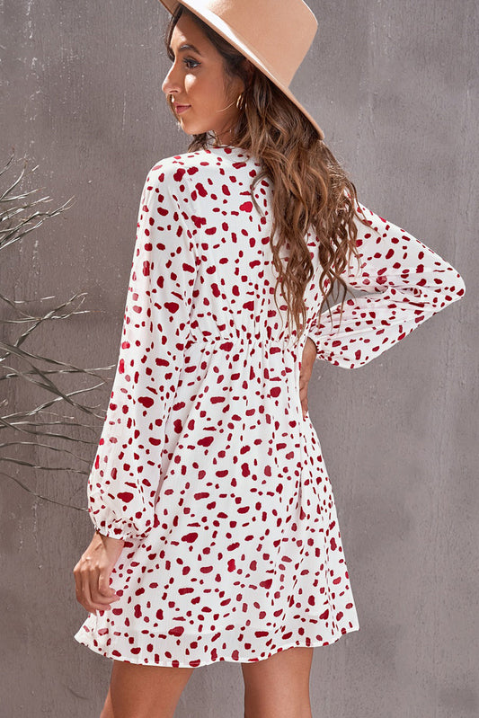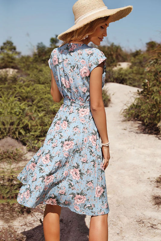 Printed Tie-Waist V-Neck Flutter Sleeve Dress