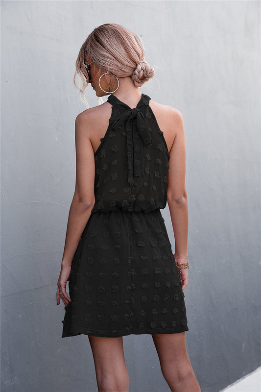 Floral Polka Dot Belted Sleeveless Mini Dress