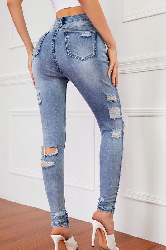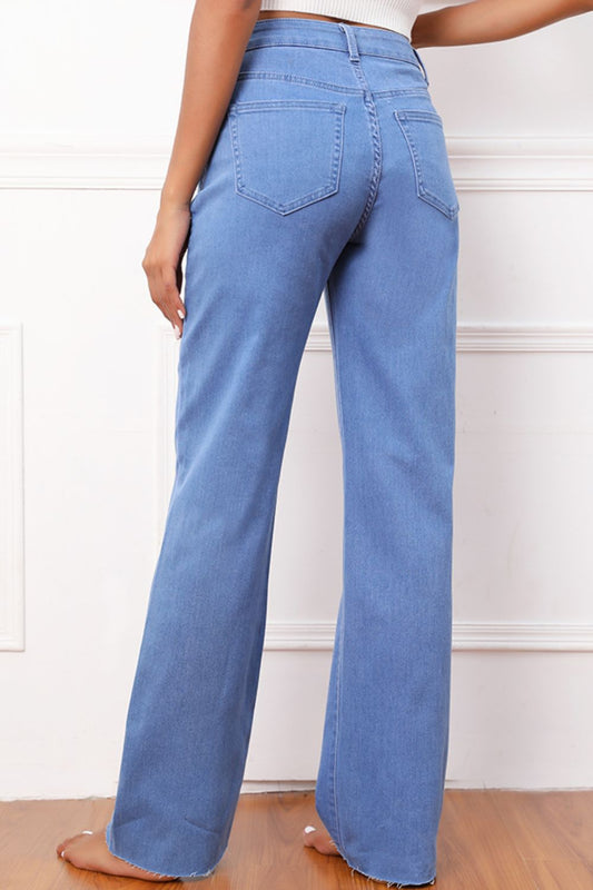Judy Blue Full Size Cameron High Waist Destroyed Hem Straight Jeans