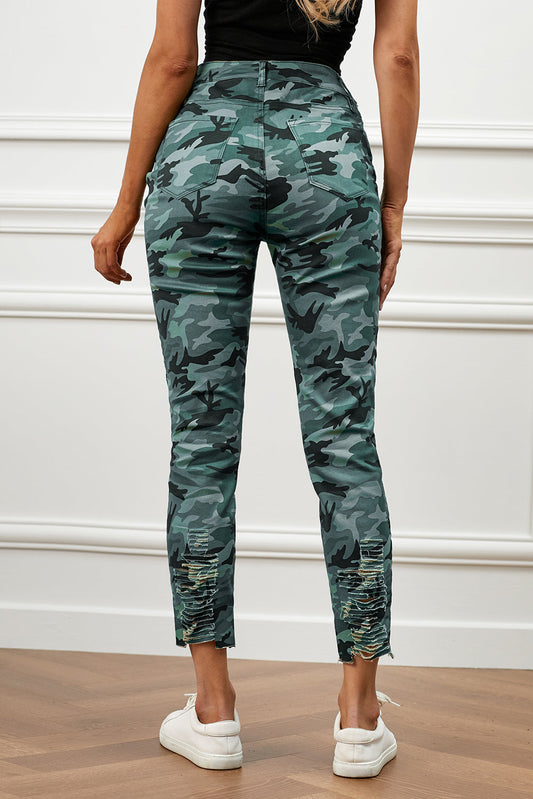 Kancan High-Rise Distressed Flare Jeans in White (Button-Fly)