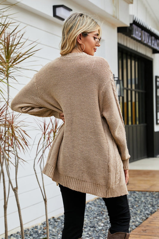Dropped Shoulder Cable-Knit Open Front Cardigan