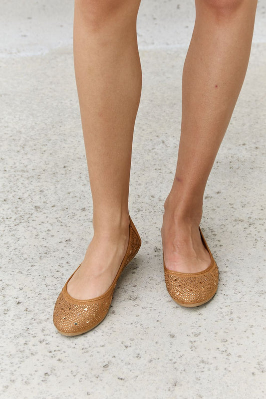 Forever Link Rhinestone Ballet Flats in Tan