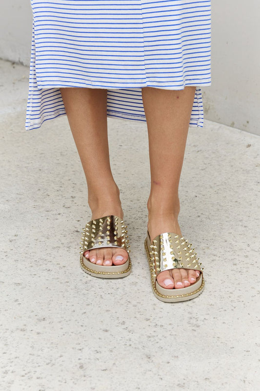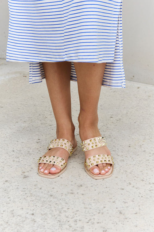 Forever Link Studded Double Strap Platform Slide Sandal