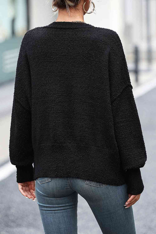 Striped Round Neck Button-Down Dropped Shoulder Cardigan