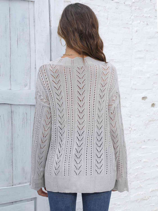 Ribbed Round Neck Long Sleeve Pullover Sweater