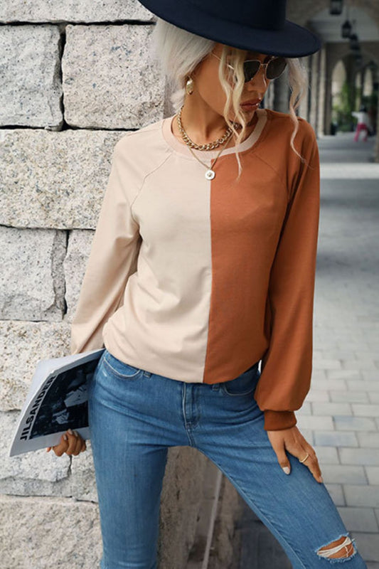 Two-Tone Round Neck Raglan Sleeve Sweatshirt