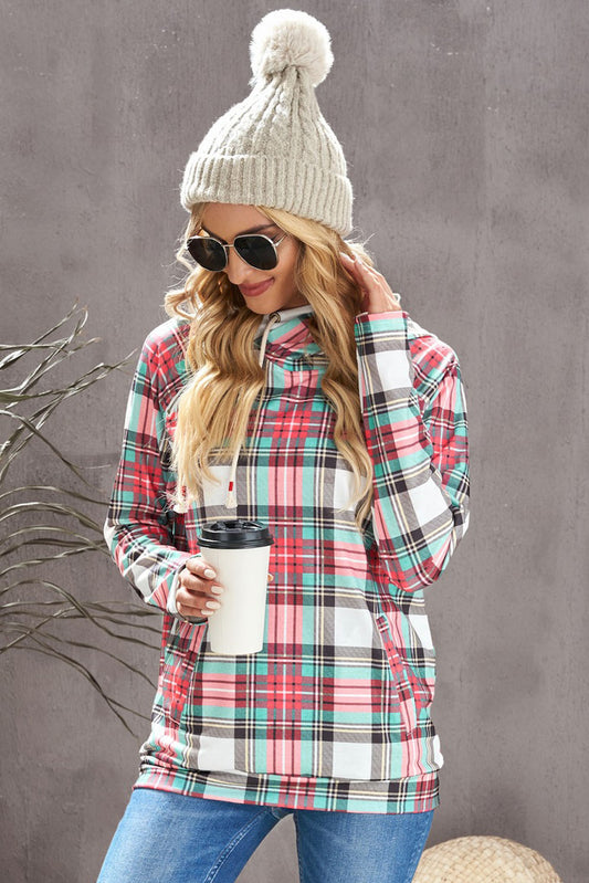 Plaid Drawstring Detail Hoodie