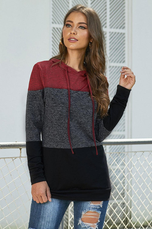 Color Block Raglan Sleeve Drawstring Sweatshirt