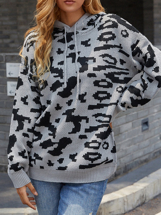 Leopard Drawstring Hooded Sweater