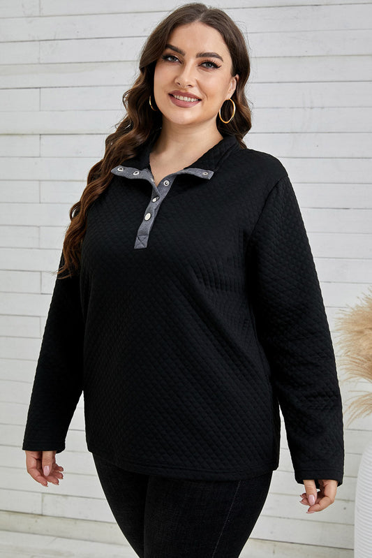 Plus Size Quilted Quarter-Snap Sweatshirt