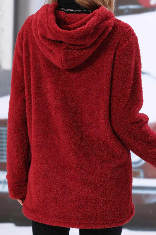 Full Size Printed Quarter-Snap Drop Shoulder Hoodie