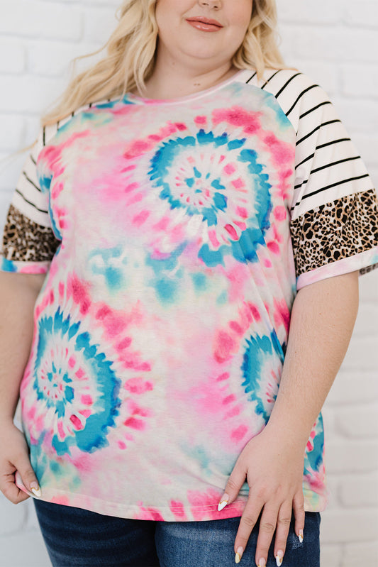 Plus Size Tie-Dye Mixed Print Raglan Sleeve T-Shirt