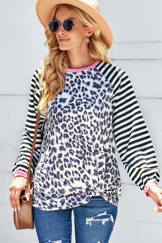 Mixed Print Contrast Trim Raglan Sleeve Top