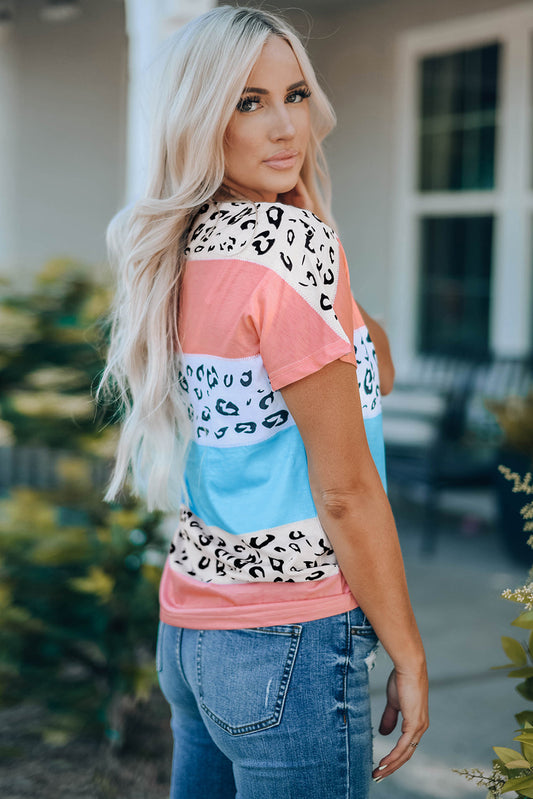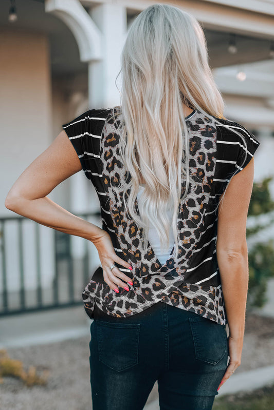 Mixed Print Hem Detail Capped Sleeve T-Shirt