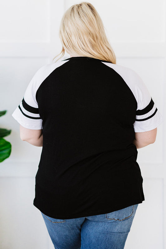 Plus Size Sheer Striped Sleeve V-Neck Top