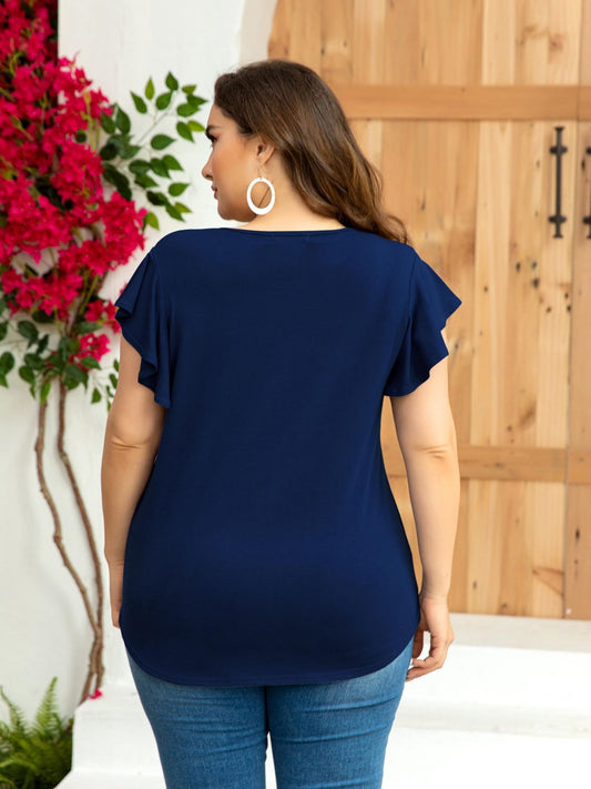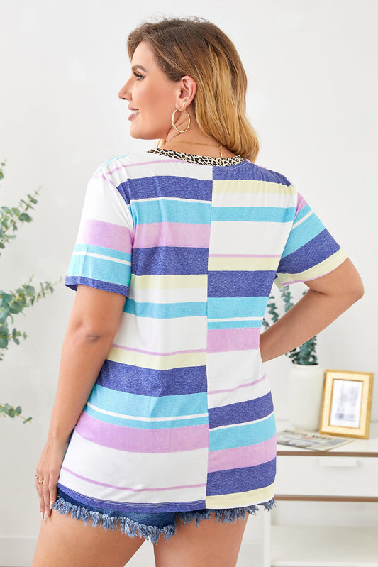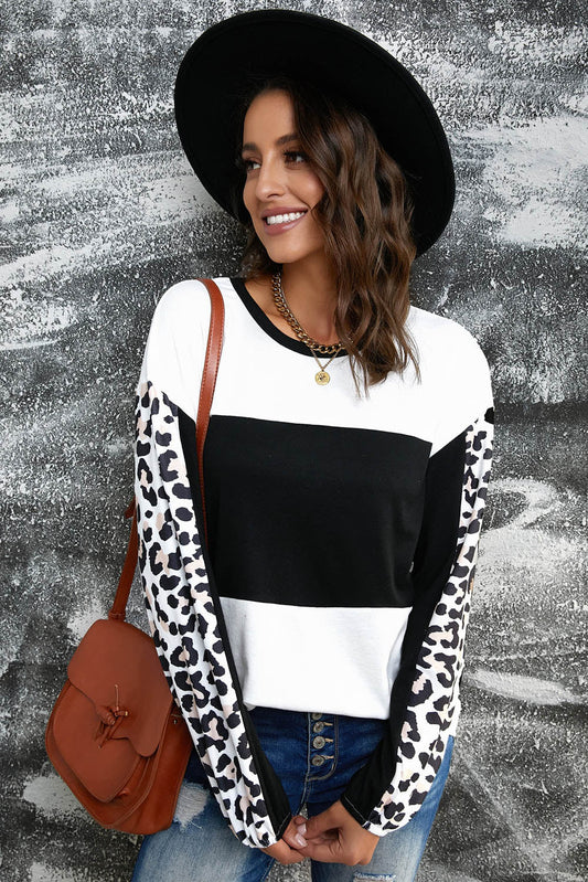 Full Size Plaid Patch Drop Shoulder Round Neck Top