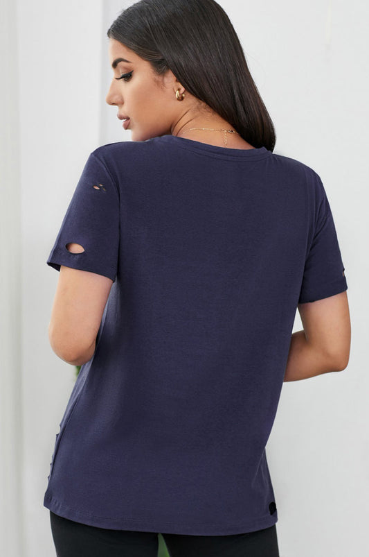 Slogan Graphic Round Neck Cuffed Tee Shirt