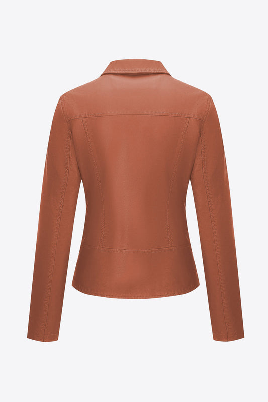 Buckle Detail Zip Up PU Leather Jacket