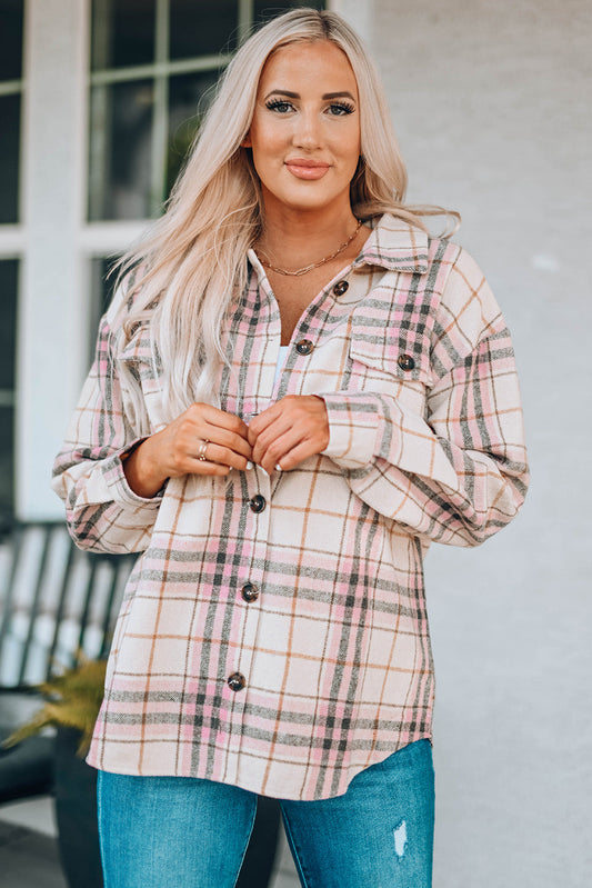 Plaid Button Down Collared Shirt Jacket with Pockets
