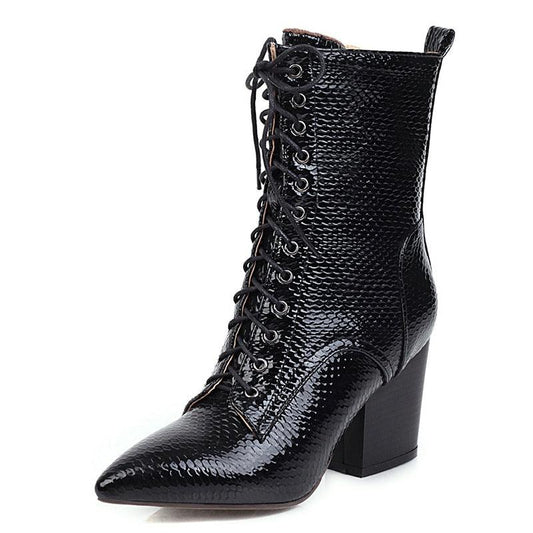 New Designers Patent Leather High Top Shoes Woman Autumn Zipper Boots Female Lace-Up Shoes (BB1)(BB2)(CD)(WO4)(2U38)(2U107)(2U36)