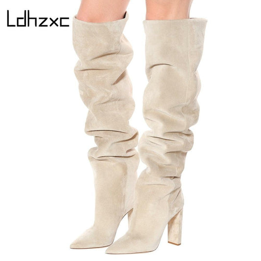 Gorgeous Women Faux Suede High Slouchy Boots - Pointy Toe Chunky Heel (BB3)(BB2)(CD)(WO4)(F38)(F36)(F42)