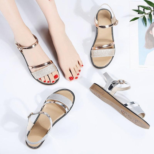 Summer Women Sandals - Gold Flat Sandals - Flip Flops Ladies Flat Heel Gladiator Sandals (SS2)(WO1)