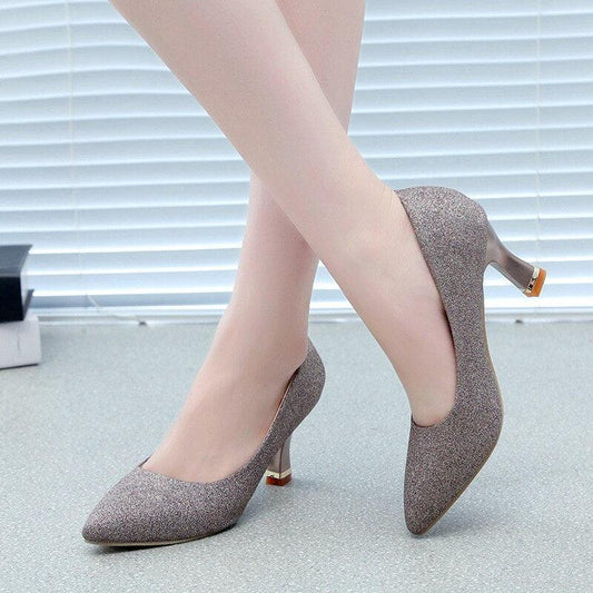 Cute Women Kitten Heels Shoes - Pointed-Toe High Heels - Silver Wedding Shoes (SH3)(SH1)(WO1)(F37)