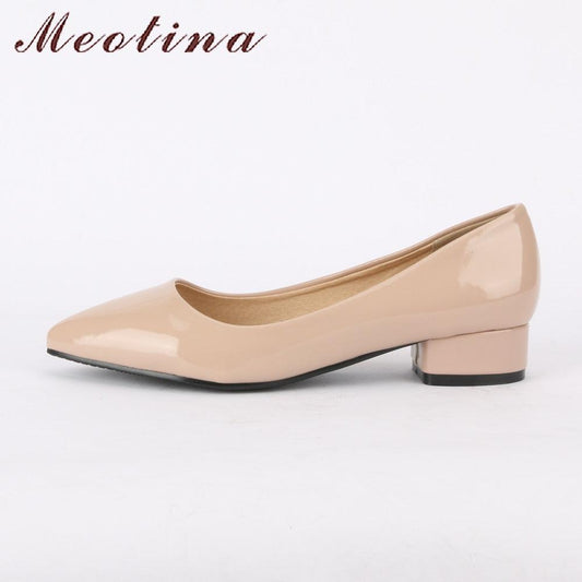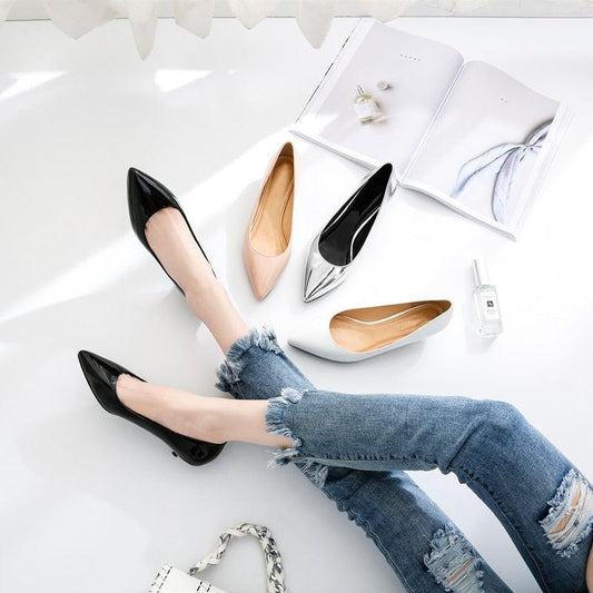 Top Quality Ladies Pumps Shoes - Patent Leather Low Heel Shoe - Nude Office Shoes Elegant Shoes (SH3)(SH1)(FS)(WO3)(F37)