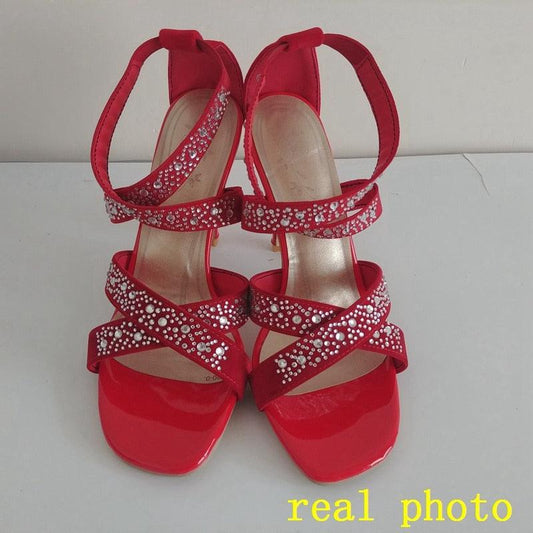 Holiday Women High Heels Sandals - Stretched Flock Rhinestone Glitter Shoes (SH2)(SS1)(WO3)(CD)(F37)(F36)(F39)