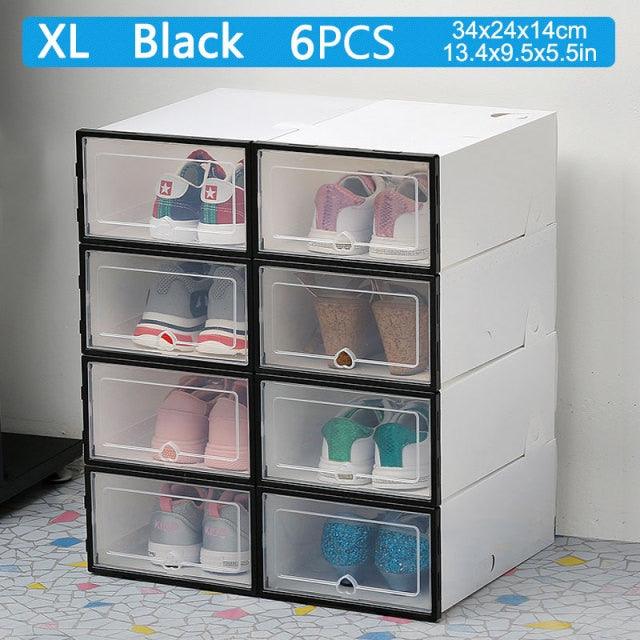 6pcs transparent shoe box thickened transparent dustproof shoe storage box can stacked combination shoe cabinet shoe organizer (1U67)(AK9)(F67)