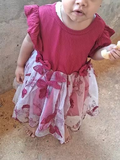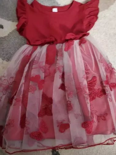Dress For Kids 3Months -3Years old Cute Butterfly Embroidery Mesh Ruffle Trim Bow Front Princess Formal Dresses