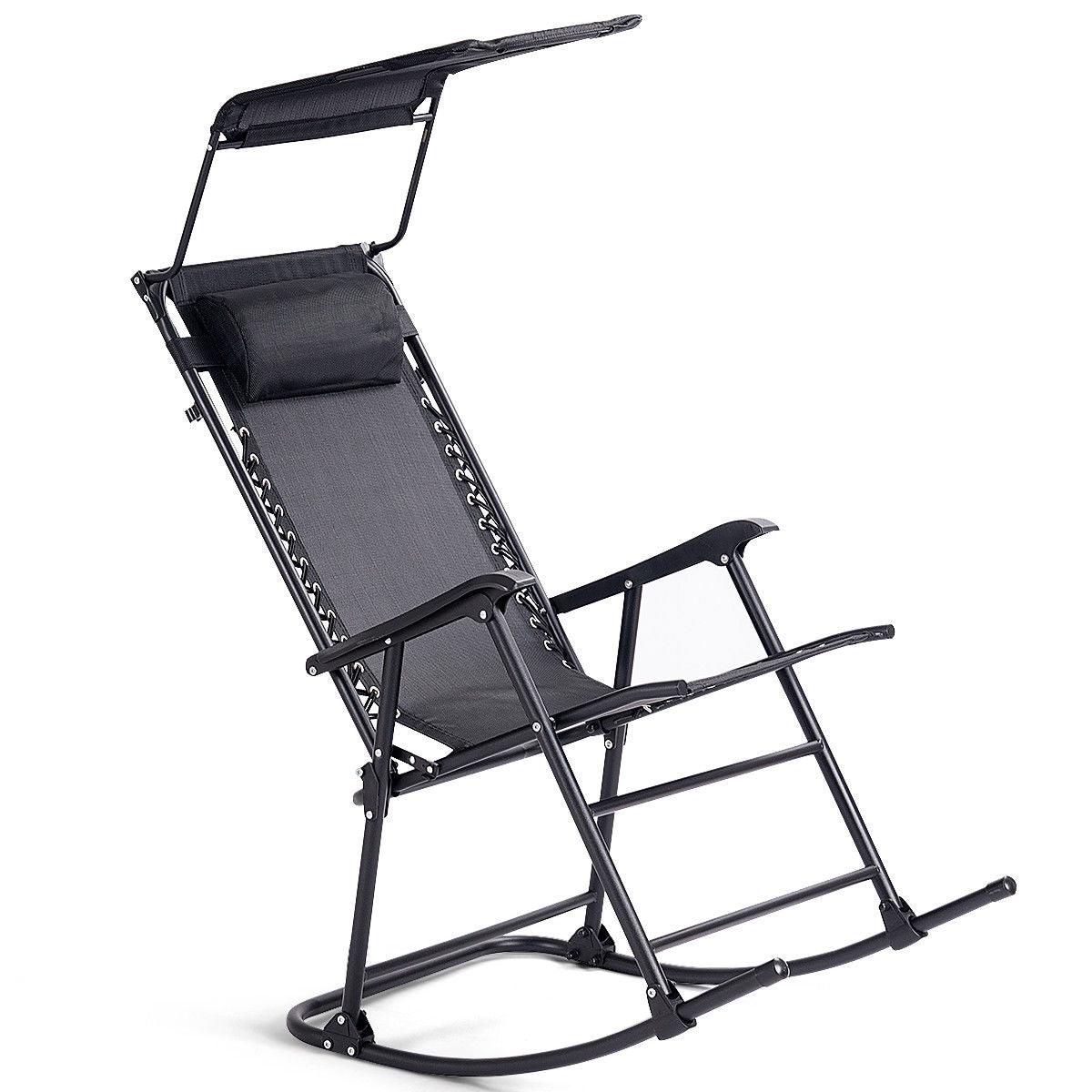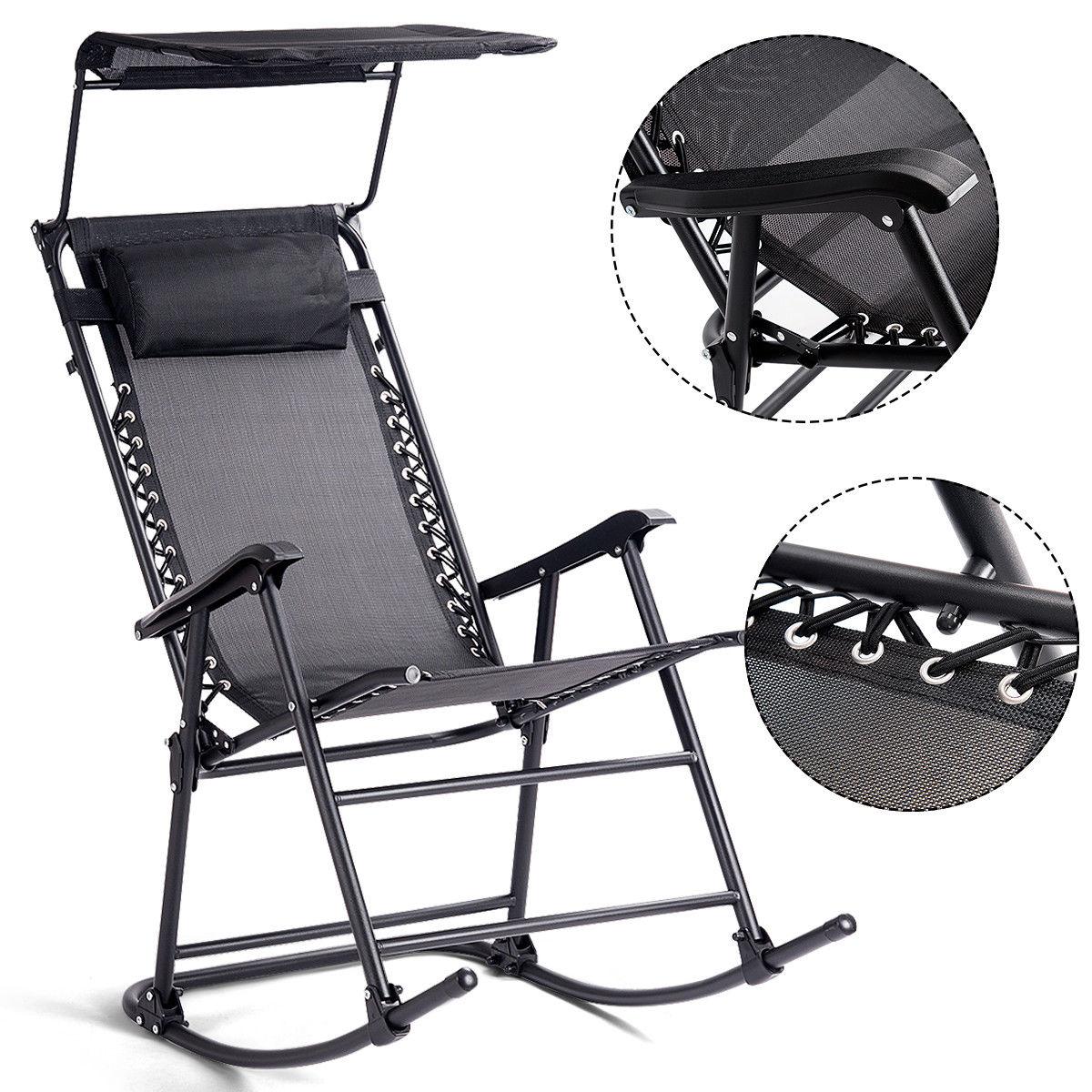 Folding Rocking Chair Rocker Porch Zero Gravity Furniture Sunshade Canopy Black (FW2)(1U67)(F67)