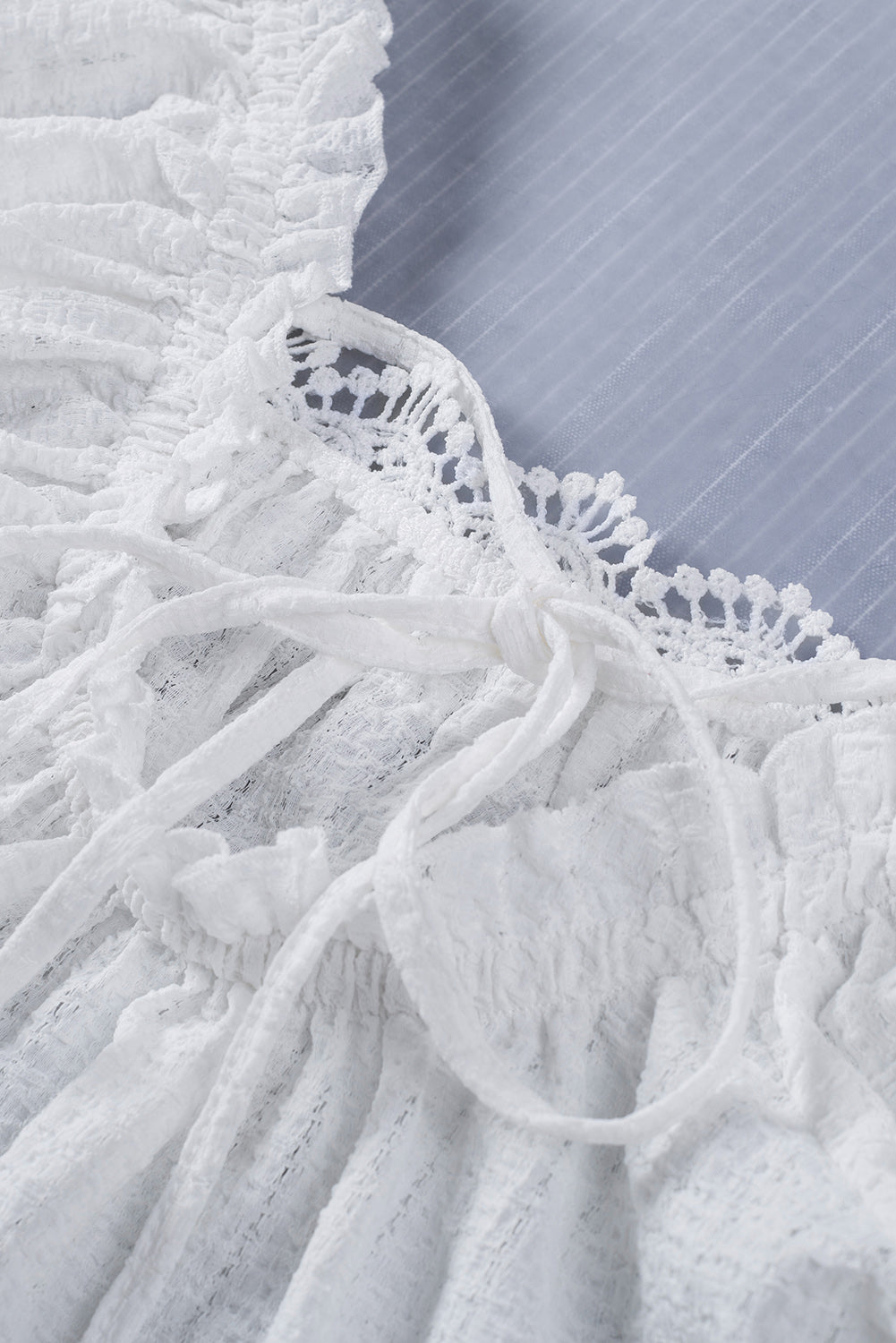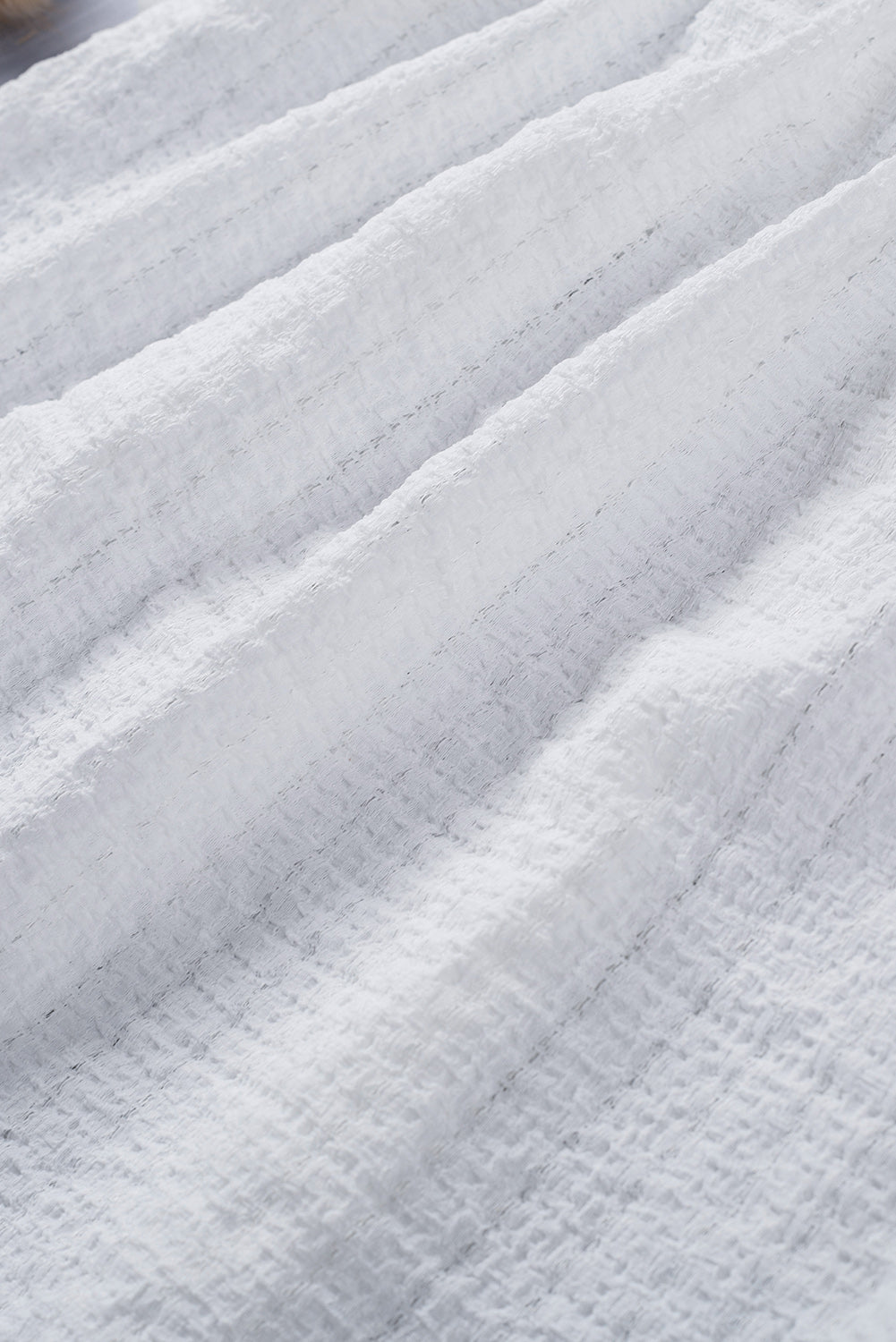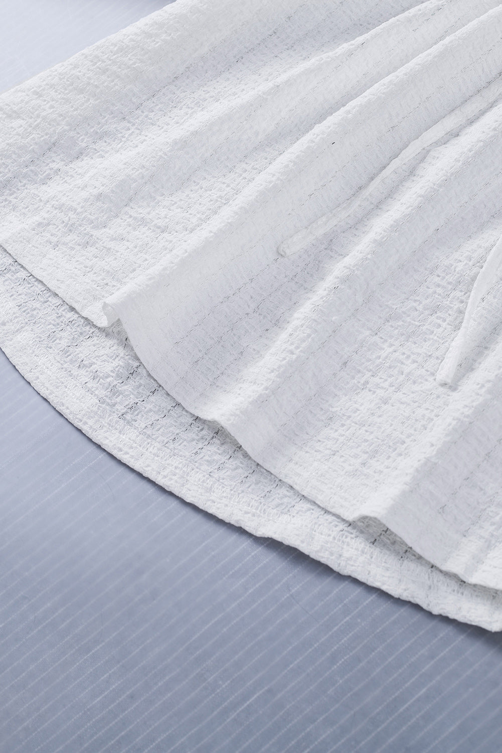 S: bust 34 in, sleeve length 10 in, front length 19 in, hem width 51 in